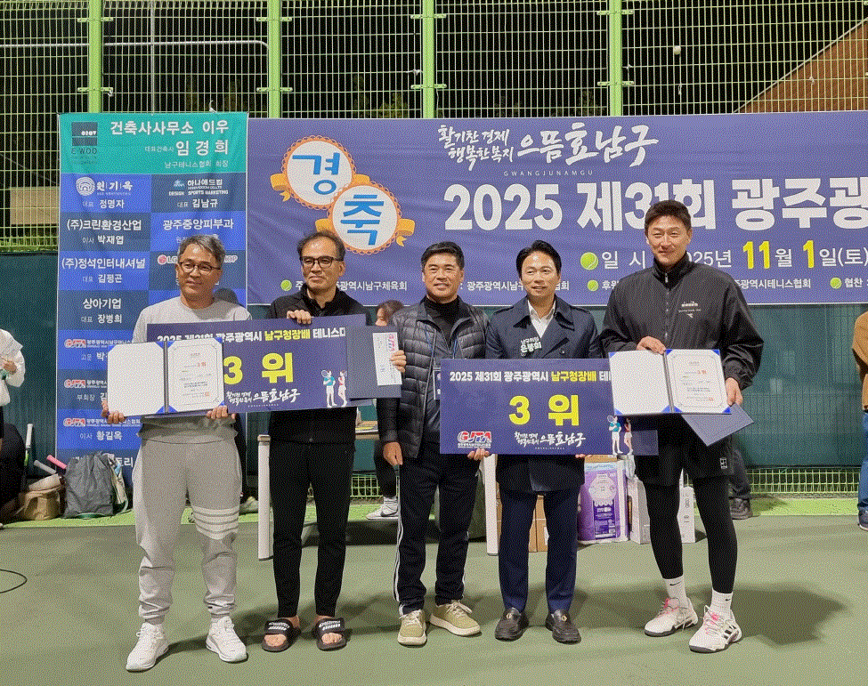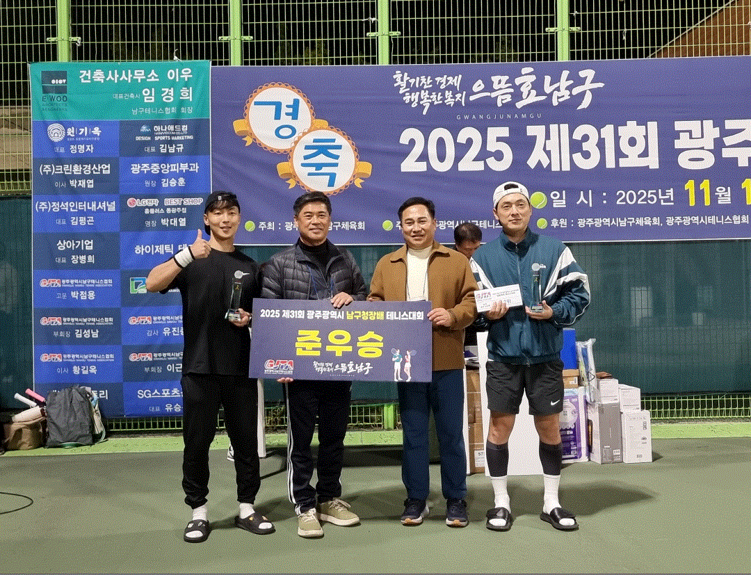 2025 제31회 광주광역시 남구청장배 테니스대회(남자순수신인부 입상자) 페이지 정보 작성자 남구관리자 작성일25-11-09 17:24 조회1회 댓글0건 첨부파일 관련링크 목록 본문 2025 제31회 광주광역시 남구청장배 테니스대회남자순수신인부 입상자 사진입니다. 다시 한번 축하드립니다! 댓글목록 등록된 댓글이 없습니다. 목록