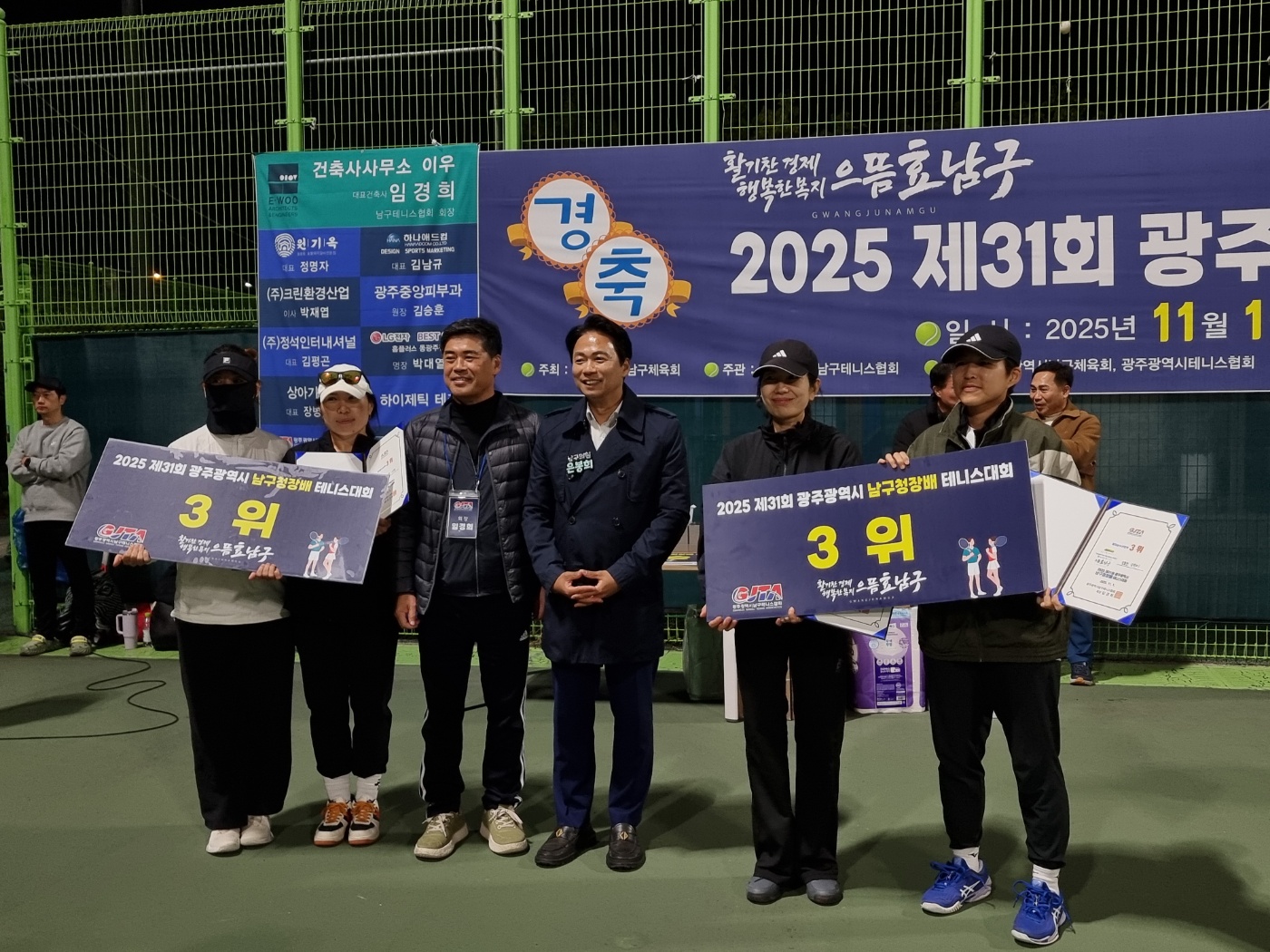 2025 제31회 광주광역시 남구청장배 테니스대회(여자순수신인부) 페이지 정보 작성자 남구관리자 작성일25-11-09 17:30 조회1회 댓글0건 첨부파일 관련링크 목록 본문 2025 제31회 광주광역시 남구청장배 테니스대회여자순수신인부 입상자 사진입니다. 다시한번 축하드립니다! 댓글목록 등록된 댓글이 없습니다. 목록