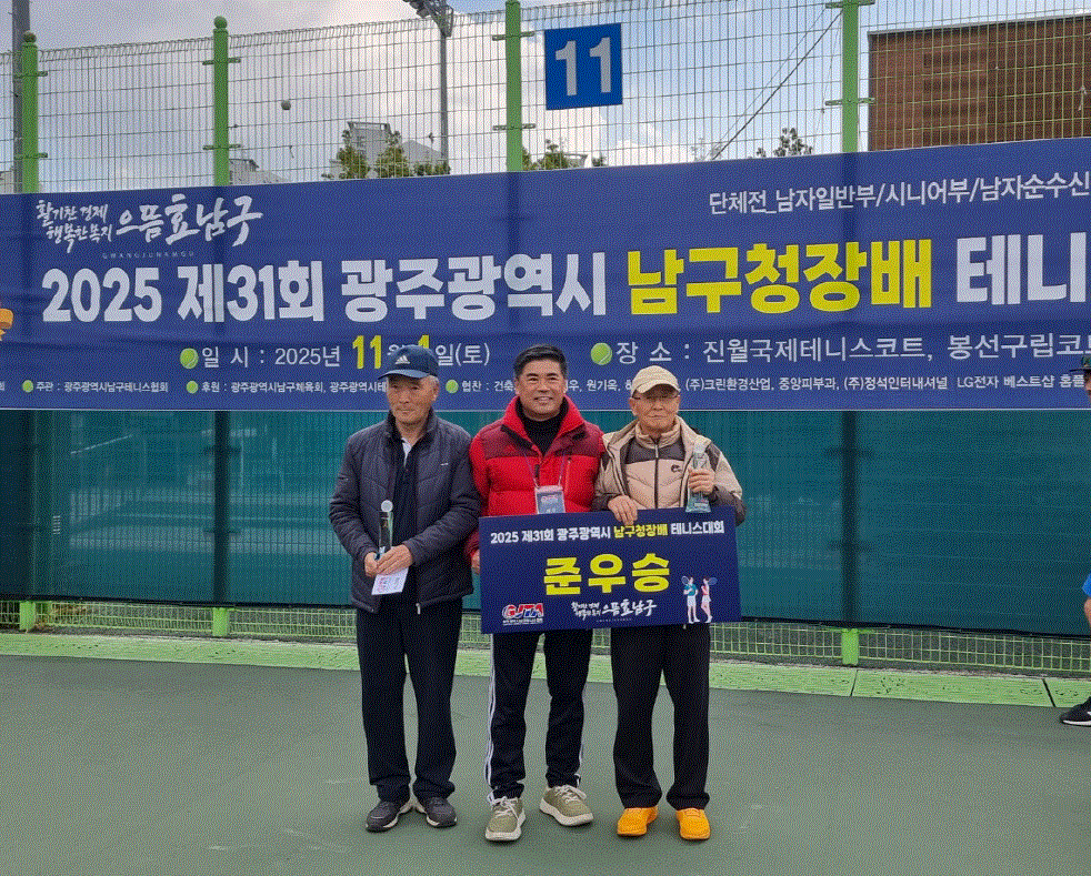 2025 제31회 광주광역시 남구청장배 테니스대회(시니어 입상자) 페이지 정보 작성자 남구관리자 작성일25-11-09 17:44 조회2회 댓글0건 첨부파일 관련링크 목록 본문 2025 제31회 광주광역시 남구청장배 테니스대회시니어 입상자 사진입니다. 다시 한번 축하드립니다! 댓글목록 등록된 댓글이 없습니다. 목록
